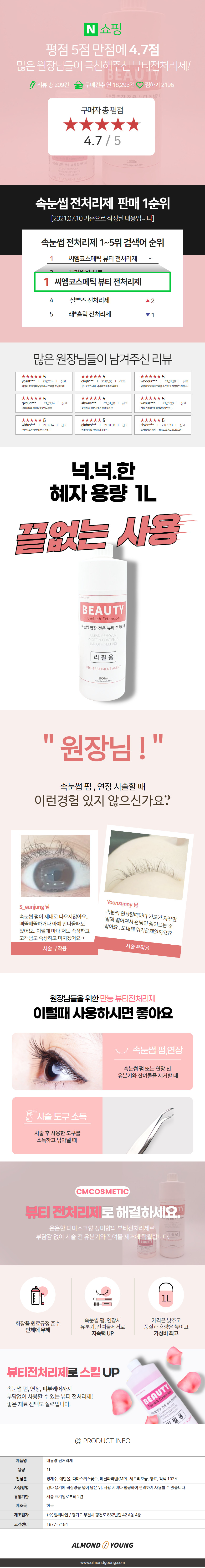 씨엠코스메틱 속눈썹 전처리제 대용량 1000ml | 아몬드영