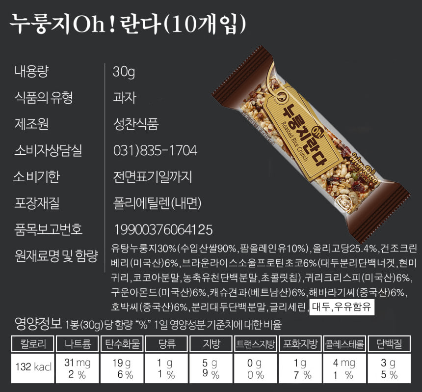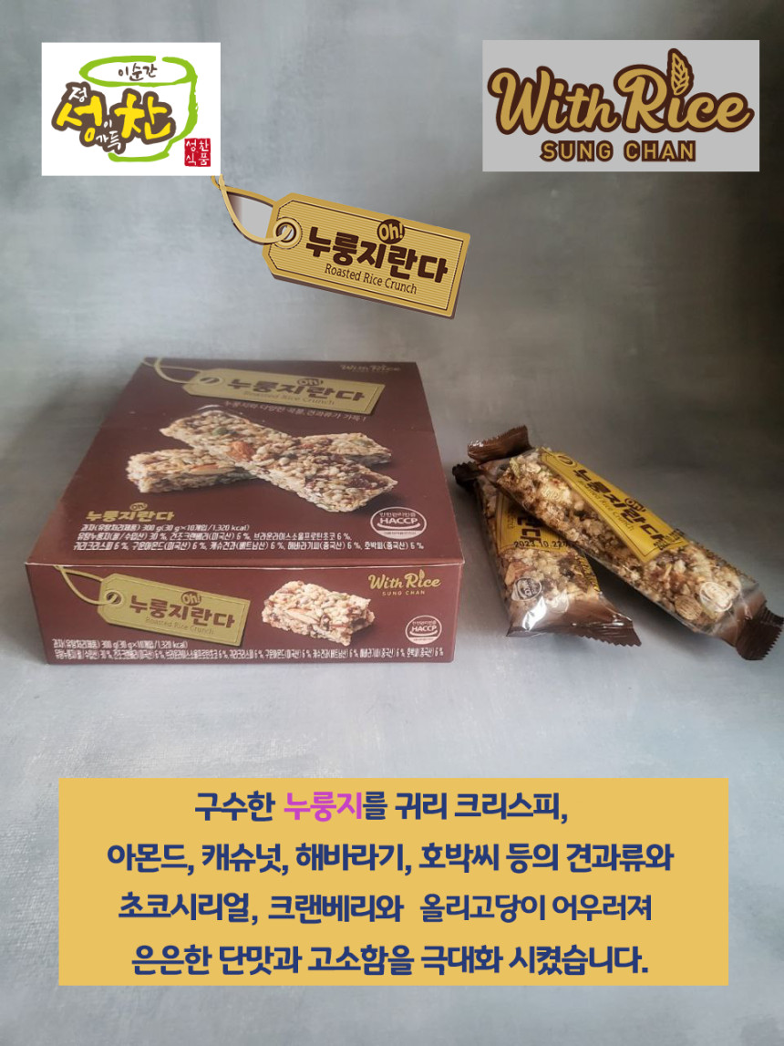 (오직미)포켓누룽지 곡물크런치바 30g 10개입 누룽지명가 성찬식품 | 아몬드영